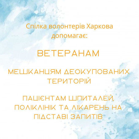 Неприбыльная организация, миссией которой является помощь пострадавшим от военной агрессии харьковчанам и жителям Харьковской области. Мы стараемся обеспечить пострадавших всем необходимым – лекарством, едой, детским питанием, одеждой и т.д.